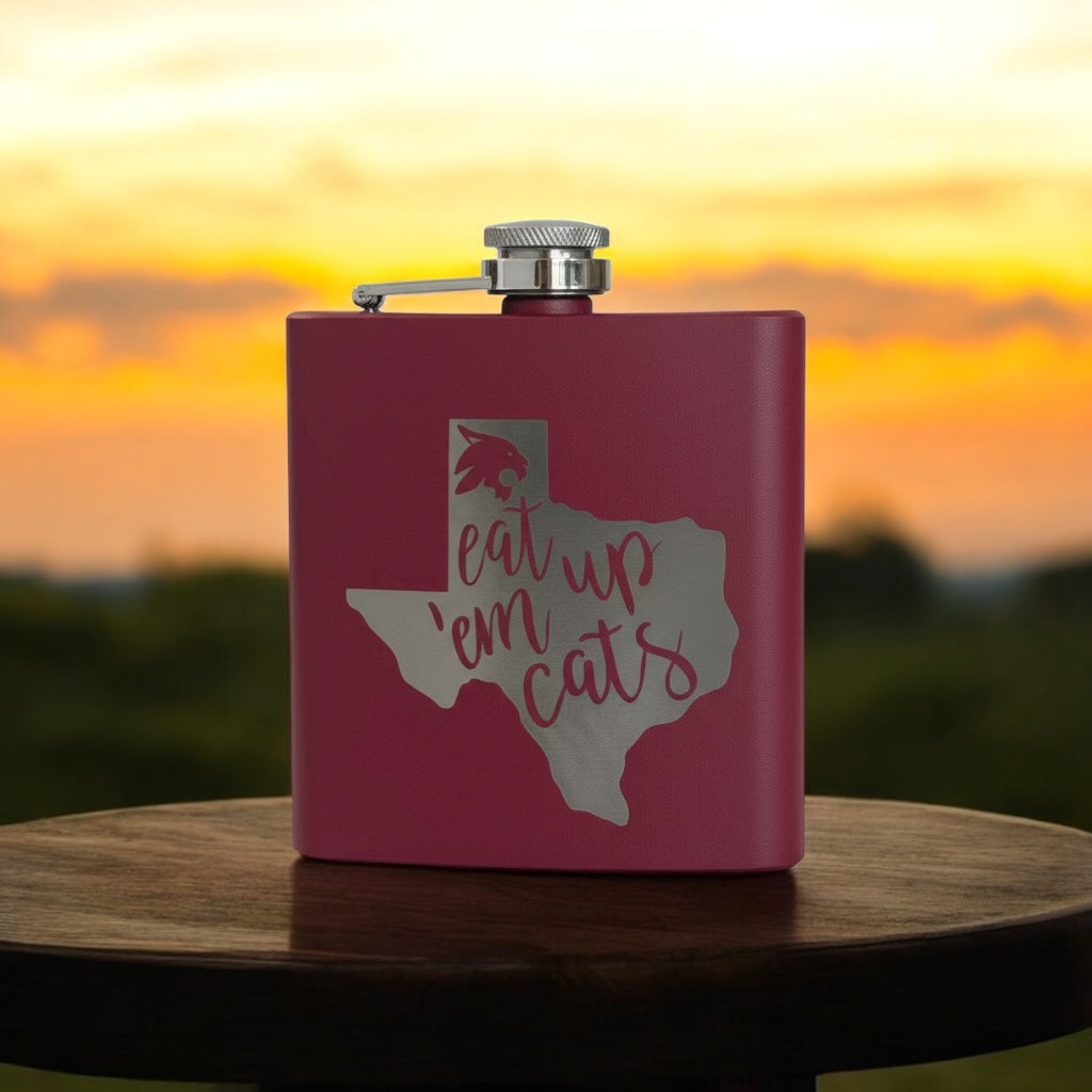 Celebrate, gift, or sip in style with our custom engraved 6oz powder-coated flask. Personalize it with a name, logo, date, or funny saying to create the perfect gift for weddings, birthdays, groomsmen, bridesmaids, holidays, Father’s Day, or just because. Each flask is laser-engraved for a crisp, permanent design that will never peel or wash off.